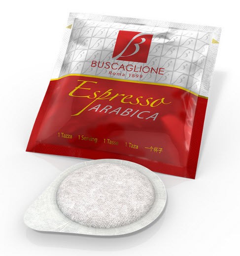 Buscaglione 100% Arabica ESE espresso pads 100% Arabica brengen de rijke smaak van hoogwaardige Arabica koffie naar voren. Deze blend combineert bonen uit Brazilië, Costa Rica, Guatemala en Ethiopië Sidamo, met een medium branding voor harmonieuze aroma's. 150 stuks.