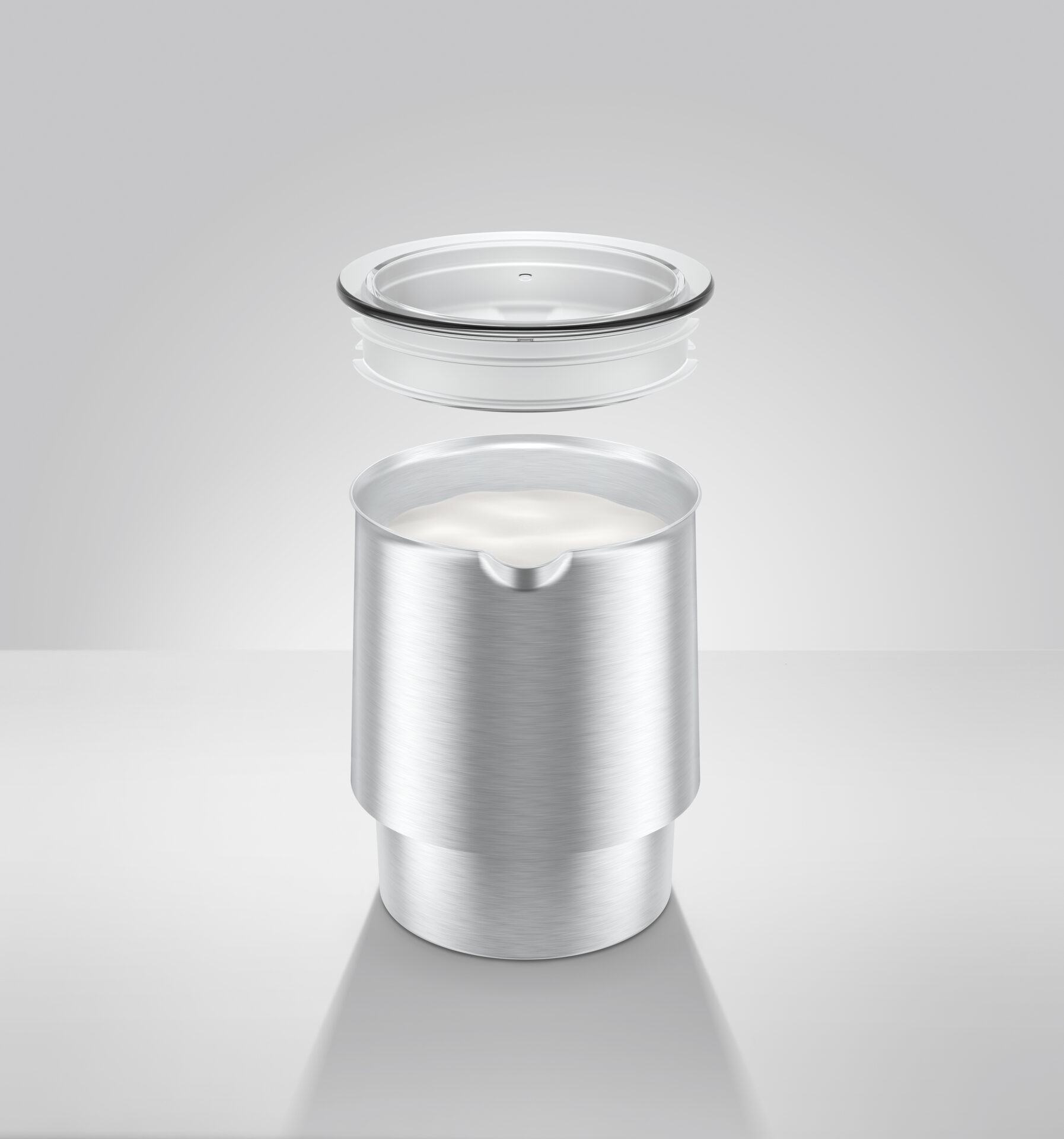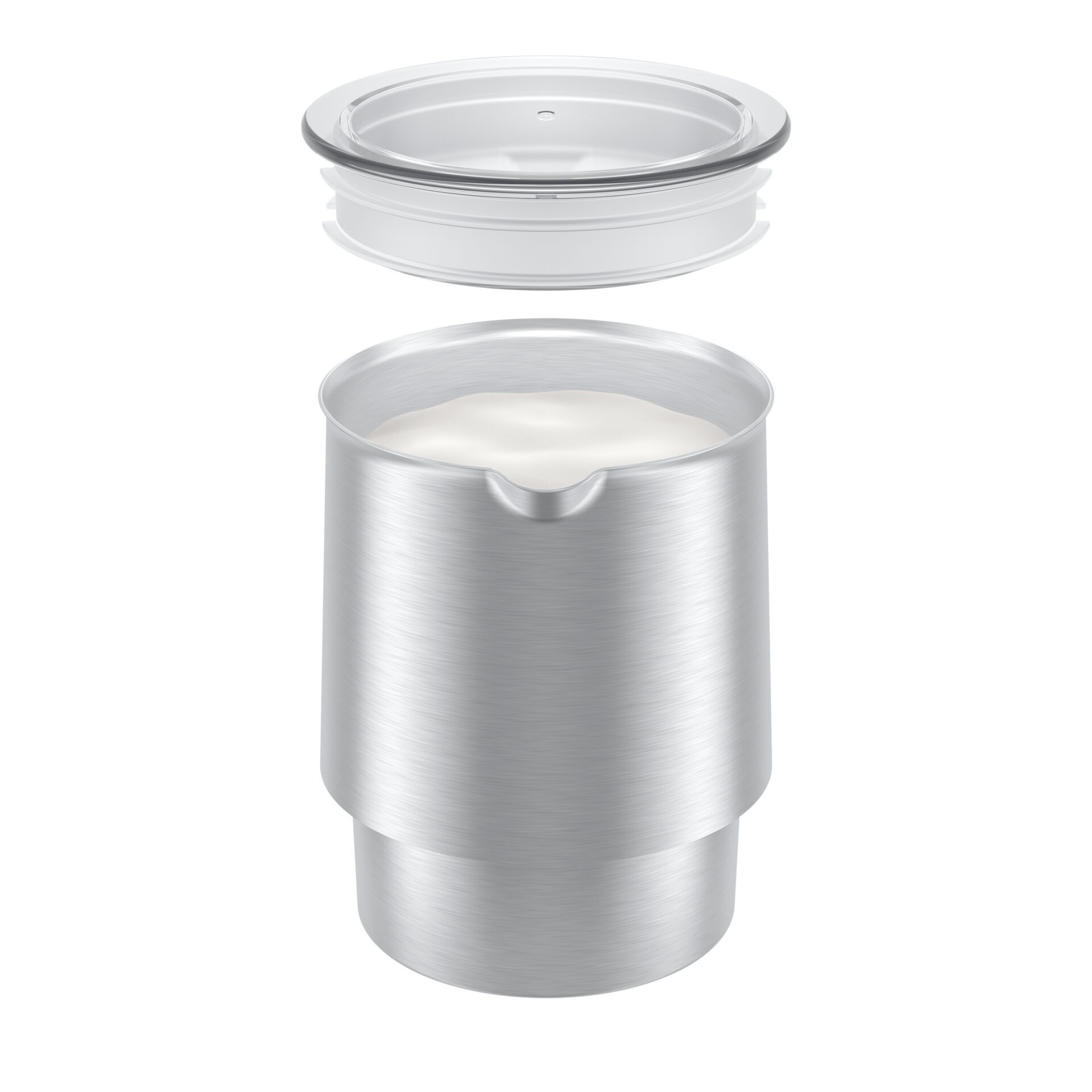 De elektrische melkopschuimer van JURA bestaat uit een zwart kunststoffen behuizing en een roestvrijstalen afneembare beker met een inhoud van 340 ml. De Jura melkopschuimer is 21 cm hoog en heeft een diameter van 12,5 cm. Het elektrisch vermogen is 600 W. Gebruik de opschuimer om koud, warm of heet melkschuim te bereiden met 1 druk op de knop.