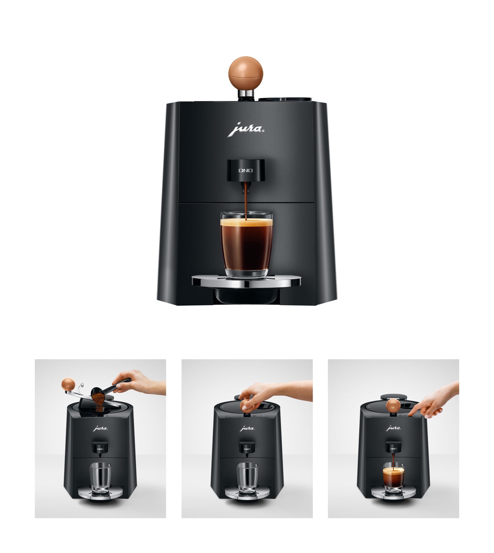 Met de JURA ONO zet u met gemalen koffie op eenvoudige wijze heerlijke espresso of gewone koffie.