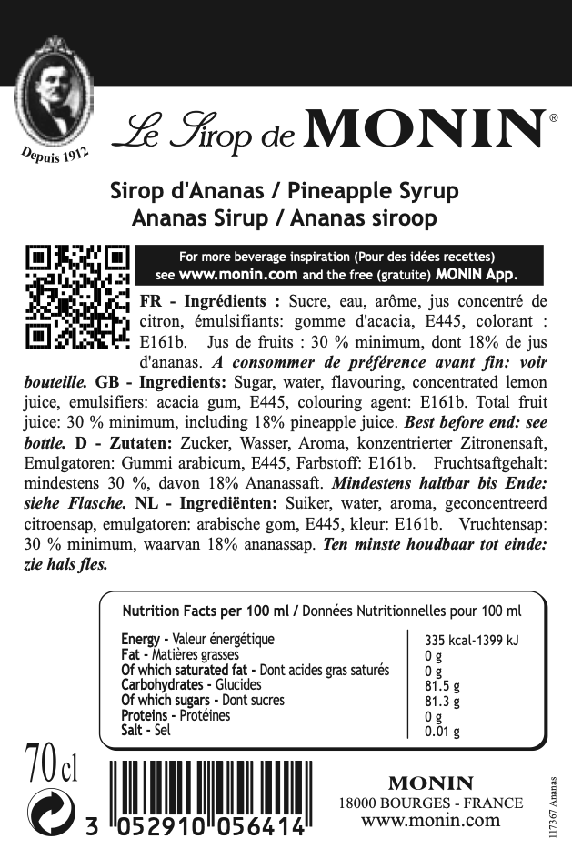 Deze siroop werd oorspronkelijk gemaakt om de beroemde Pina Colada cocktail. Het zorgt voor de pure, zoete smaak van ananas, die oorspronkelijk uit Zuid-Amerika komt.
