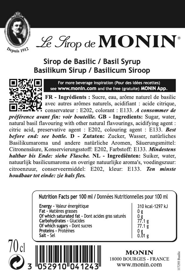 Monin Basilicum siroop zal de scherpe geur en frisse aroma's toevoegen voor nieuwe innovatieve drankjes!