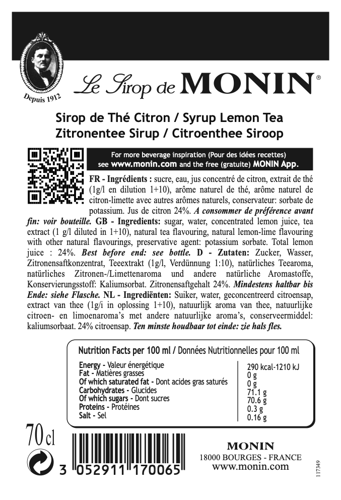 Monin Citroen Thee Extract, om zelf een heerlijke ijsthee te maken! Waan jezelf aan het strand met dit extract opgelost in ijskoud water en een hele berg ijsblokjes. Ook 's zomers erg lekker met ijskoude melk en ijsblokjes. Garneer met een schijfje citroen of een sinaasappelkrul.